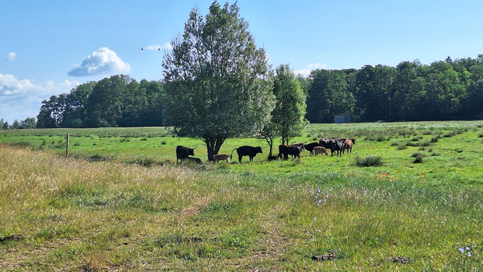 Obiges Bild zeigt ausgewählte Kühe, die eine Deckgruppe bilden und solange mit dem Zuchtstier zusammen bleiben, bis sie aufgenommen haben. Unsere Tiere 2025 Zuchtstier: Louis Geburten Kuhkälbchen 2025: Geburten Stierkälbchen 2025: Geburten Kuhkälbchen 2024: Geburten Stierkälbchen 2024: Pferd: Sindy