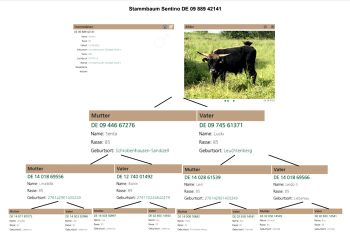 TIERE Unsere "Auerochsen" stehen ausschließlich im Zuchtbuch A des VFA (Verein zur Förderung der Auerochsenzucht e.V.). Wir legen Wert auf inzuchtfreie Tiere; deswegen halten wir unsere "Auerochsen" zeitweise in zwei Herden. Die vorgeschriebenen Blutuntersuchungen zur Tierseuchenbekämpfung sind bereits gemacht oder werden bei Verkauf vorher noch durchgeführt. Preise nach Absprache. Der Transport kann von uns übernommen werden. Alle Tiere sind Bio zertifiziert.