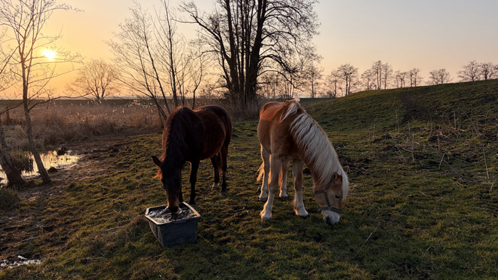 11.01.2026 Der Winter kehrt zurück. Bei schönstem Wetter, tiefen Temperaturen und Schnee schmeckt unser Bioheu am Besten.